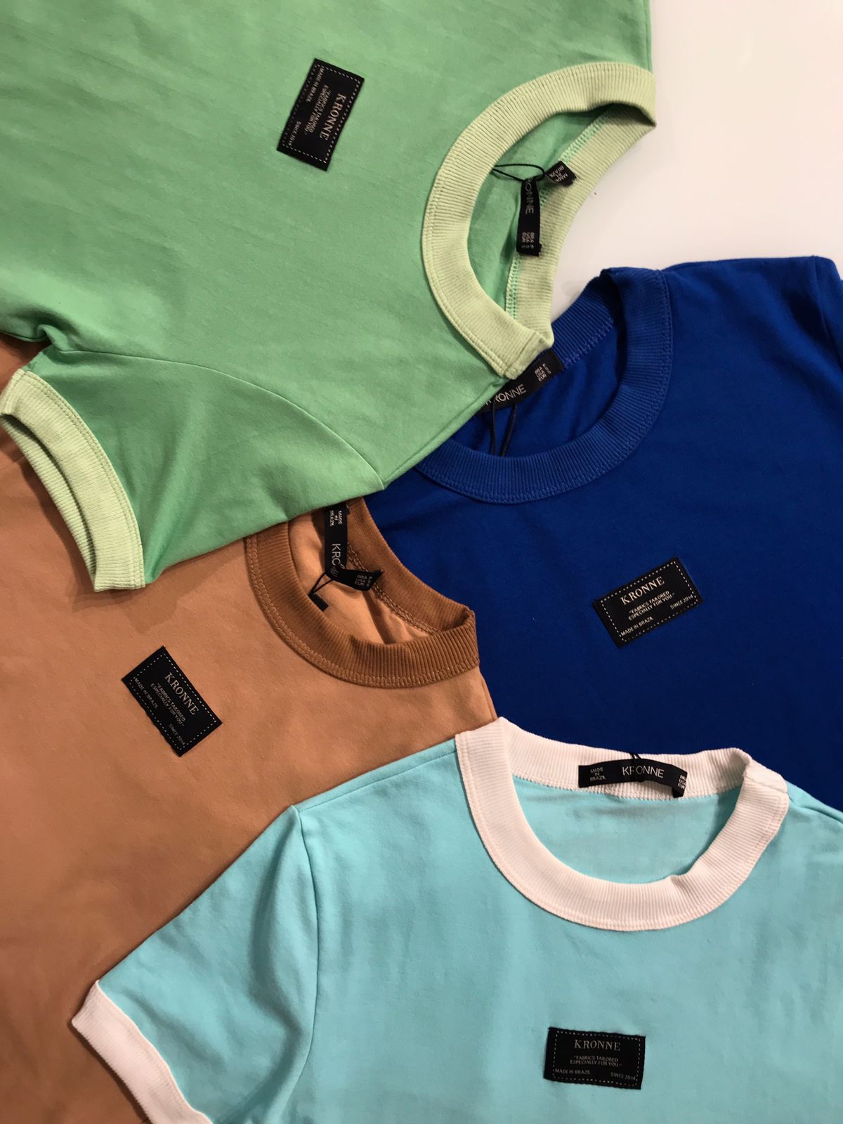 Babylook com punho e gola em ribana e etiqueta na frente. Confeccionado em malha.