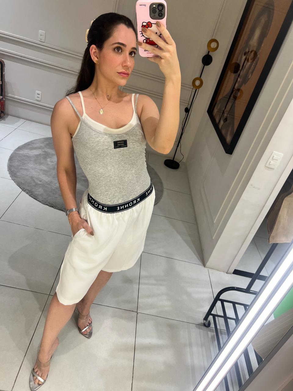 Bermuda com cós de elástico com bolsos. Confeccionada em viscose.