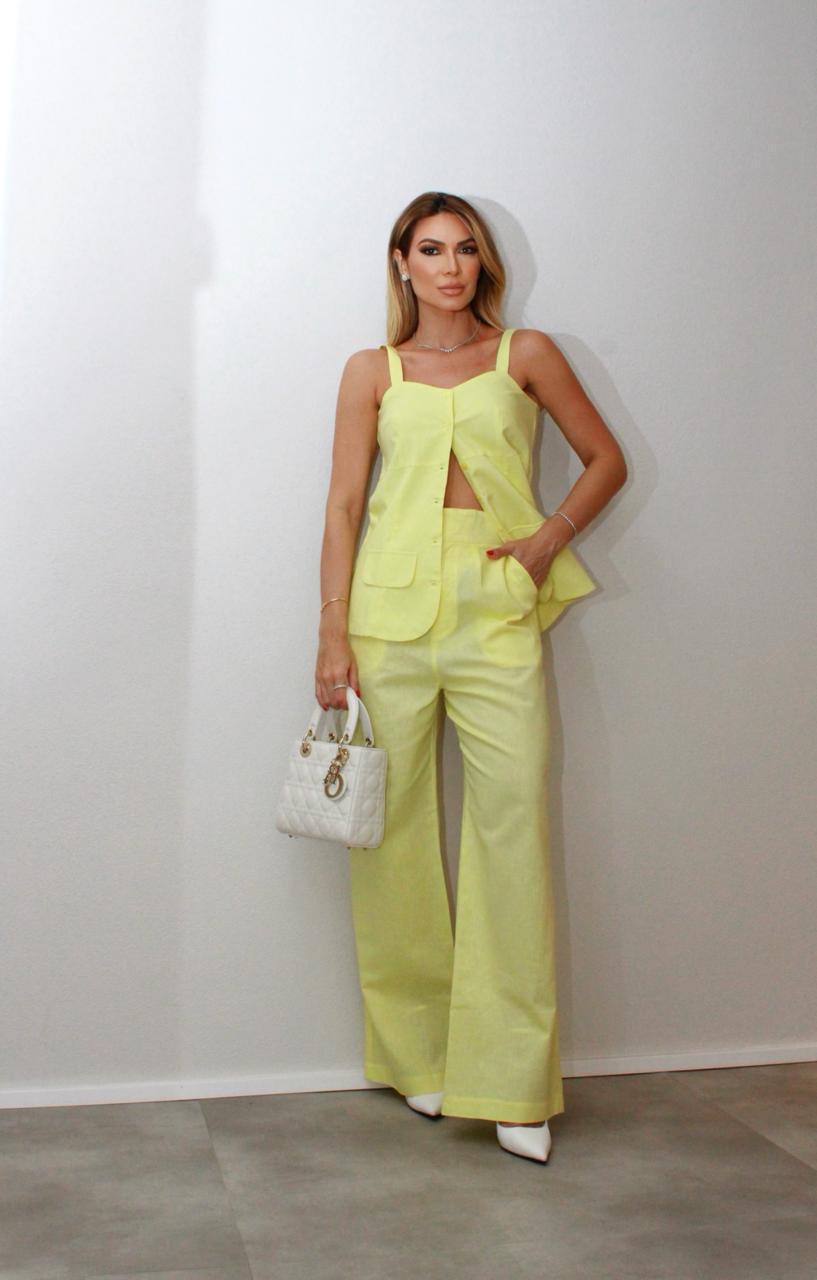 Colete com botões. Confeccionado em linho misto.